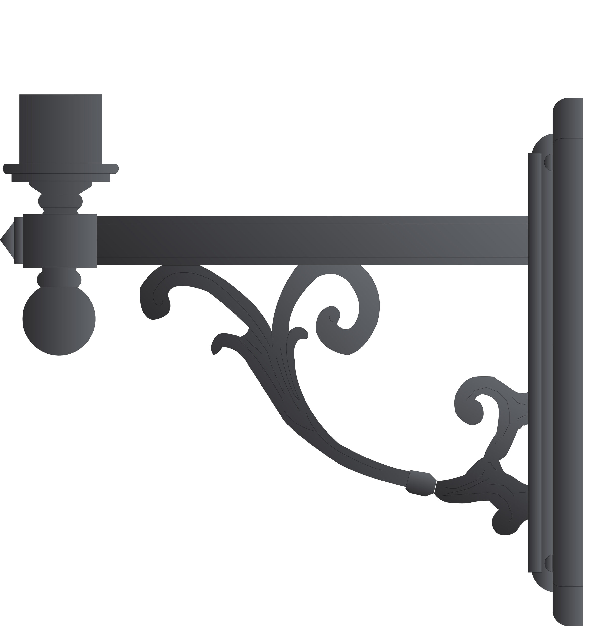 Fabricated brackets made with structural extruded aluminum and cast aluminum decorative elements with 3" OD tenon. Designed for mounting of pendant style fixtures.