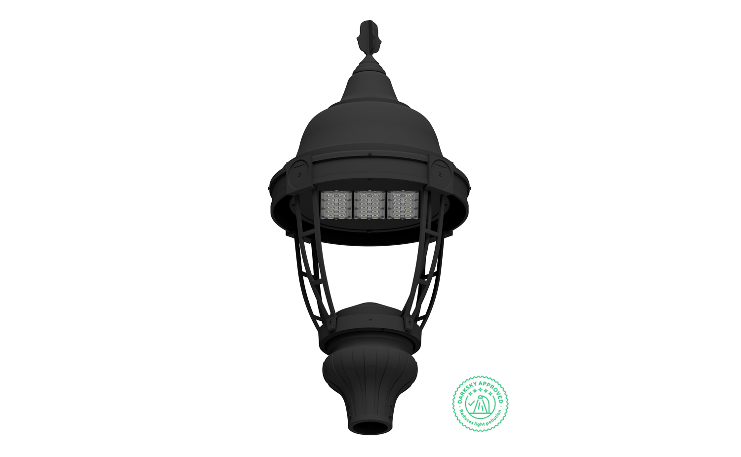 The decorative DS770FC post-top luminaire alternatively utilizes fully shielded optics to minimize glare while reducing light trespass and unwanted skyglow.