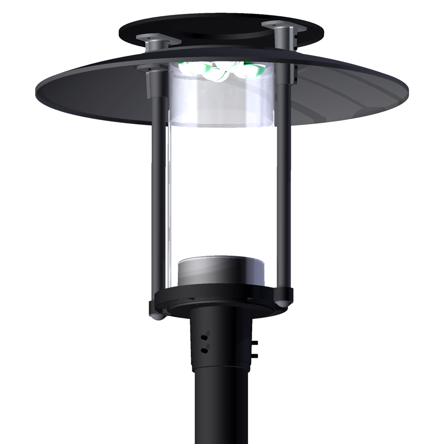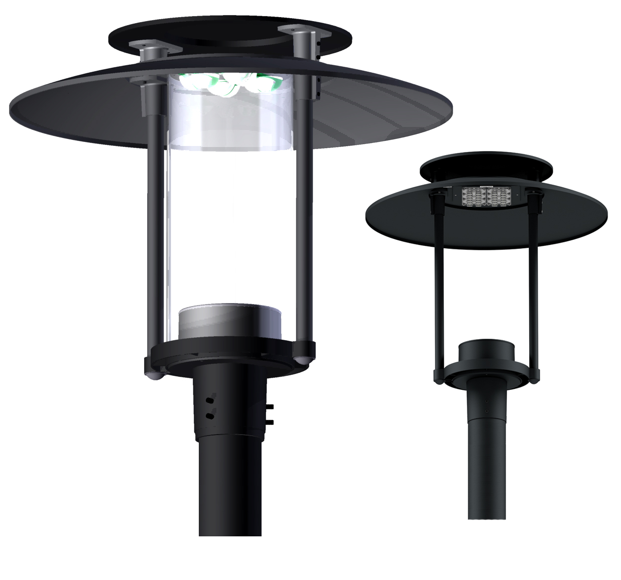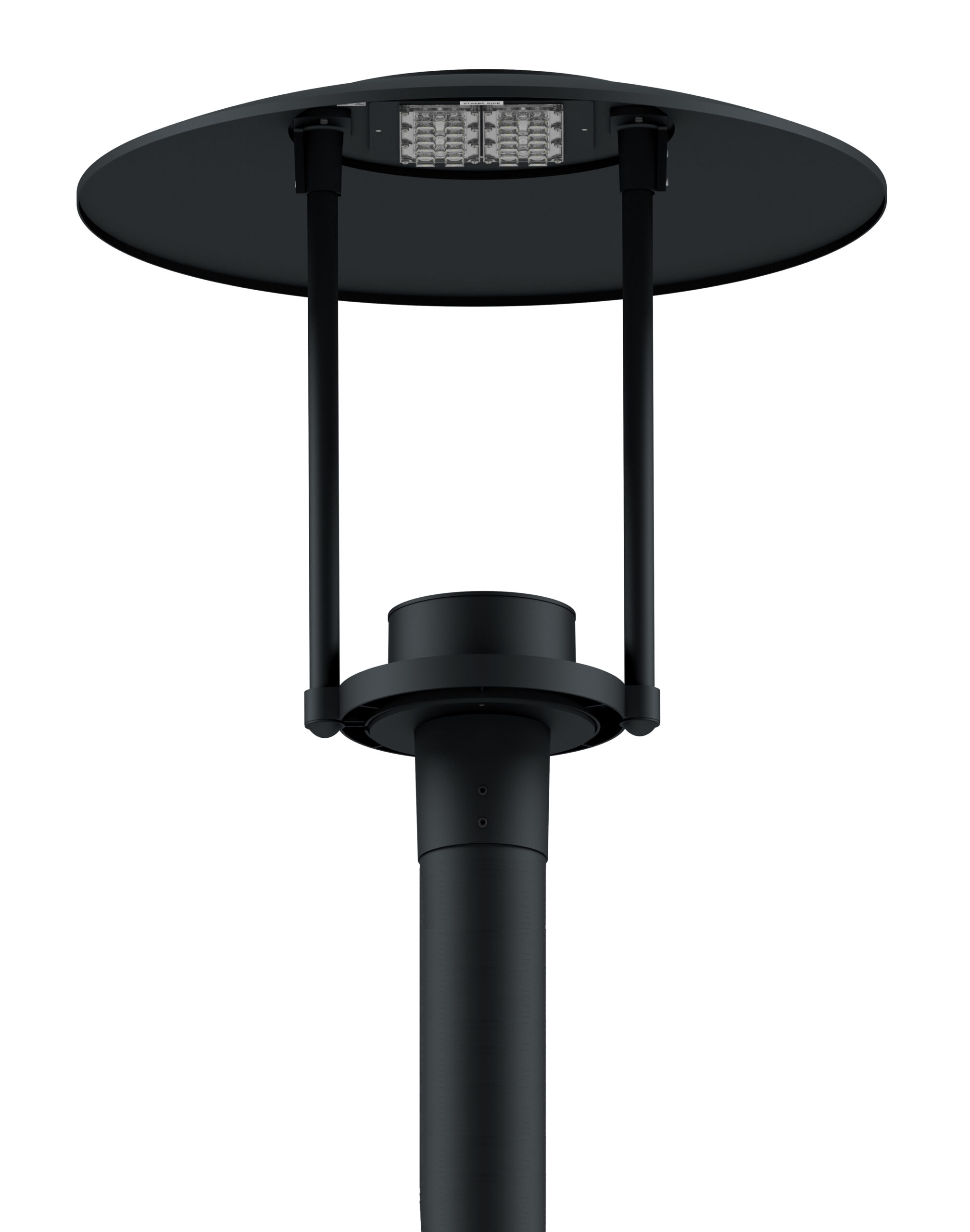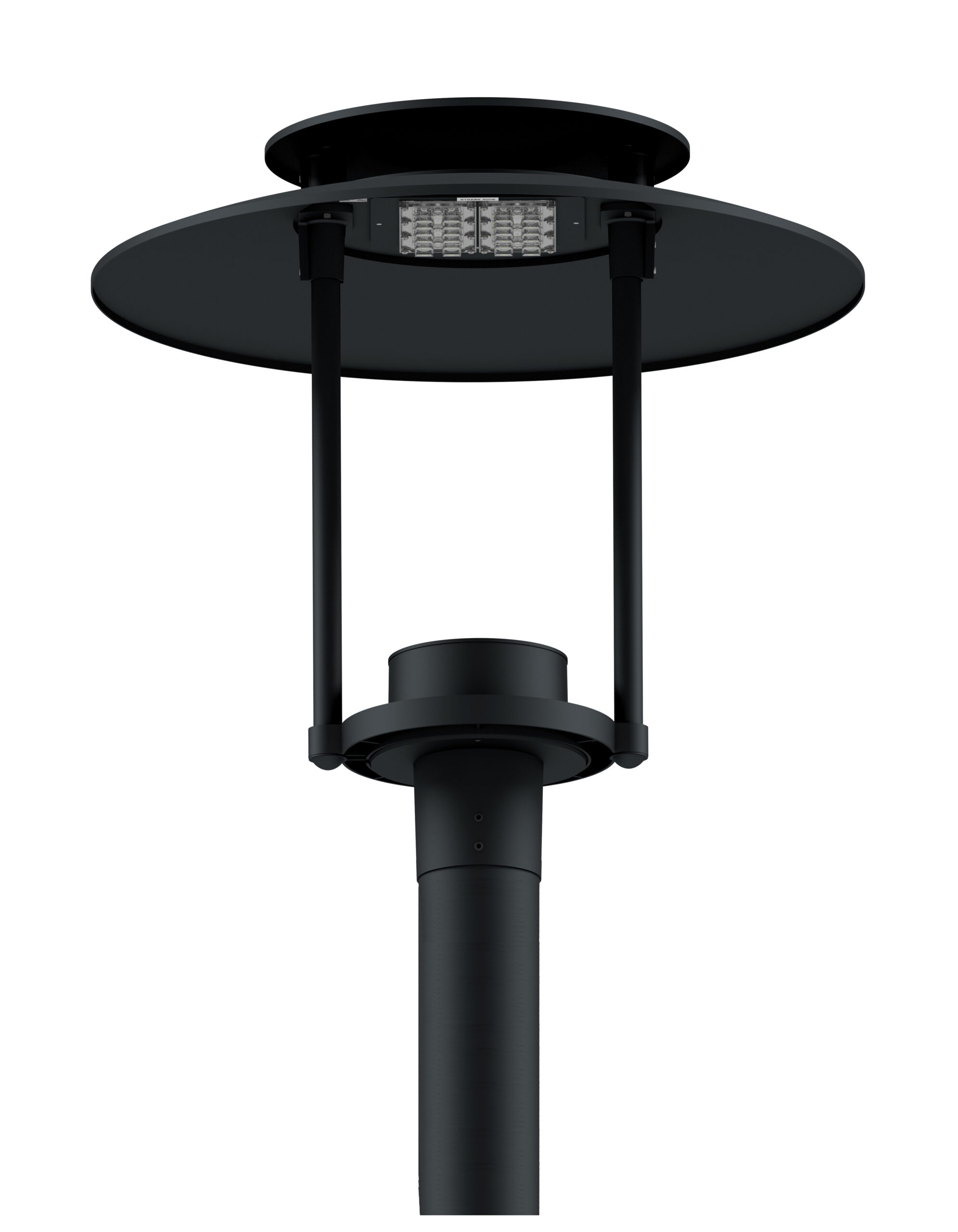 Contemporary post-top lighting for exterior retail, commercial and hospitality environments.  Includes a choice of models with high performance optical systems designed for general lighting or with Full Cutoff optics for Dark Sky friendly applications.
