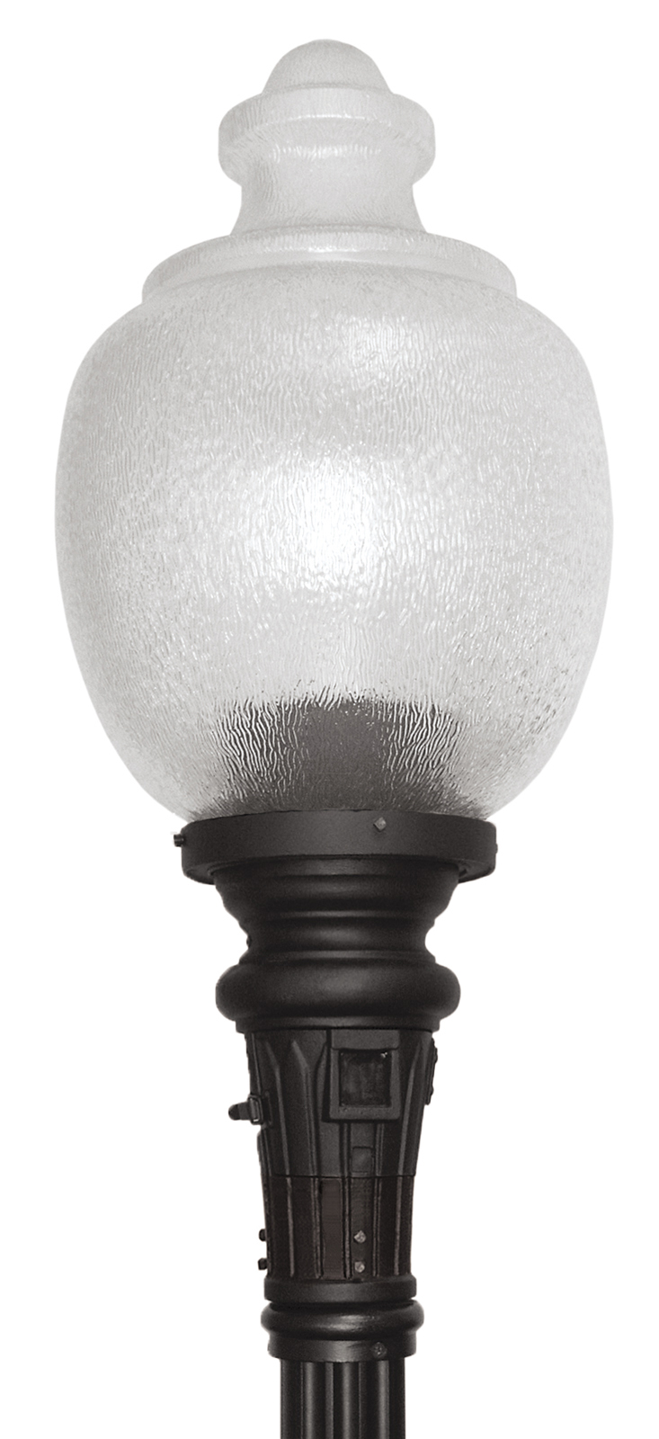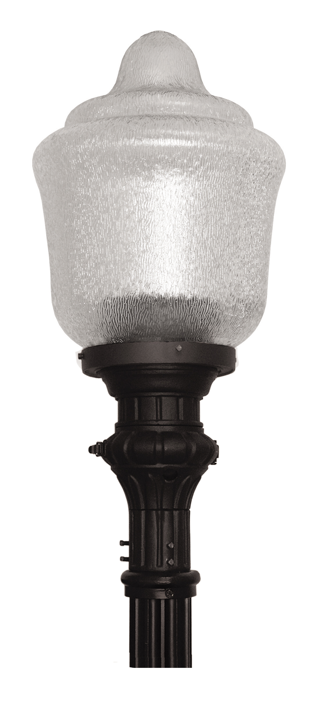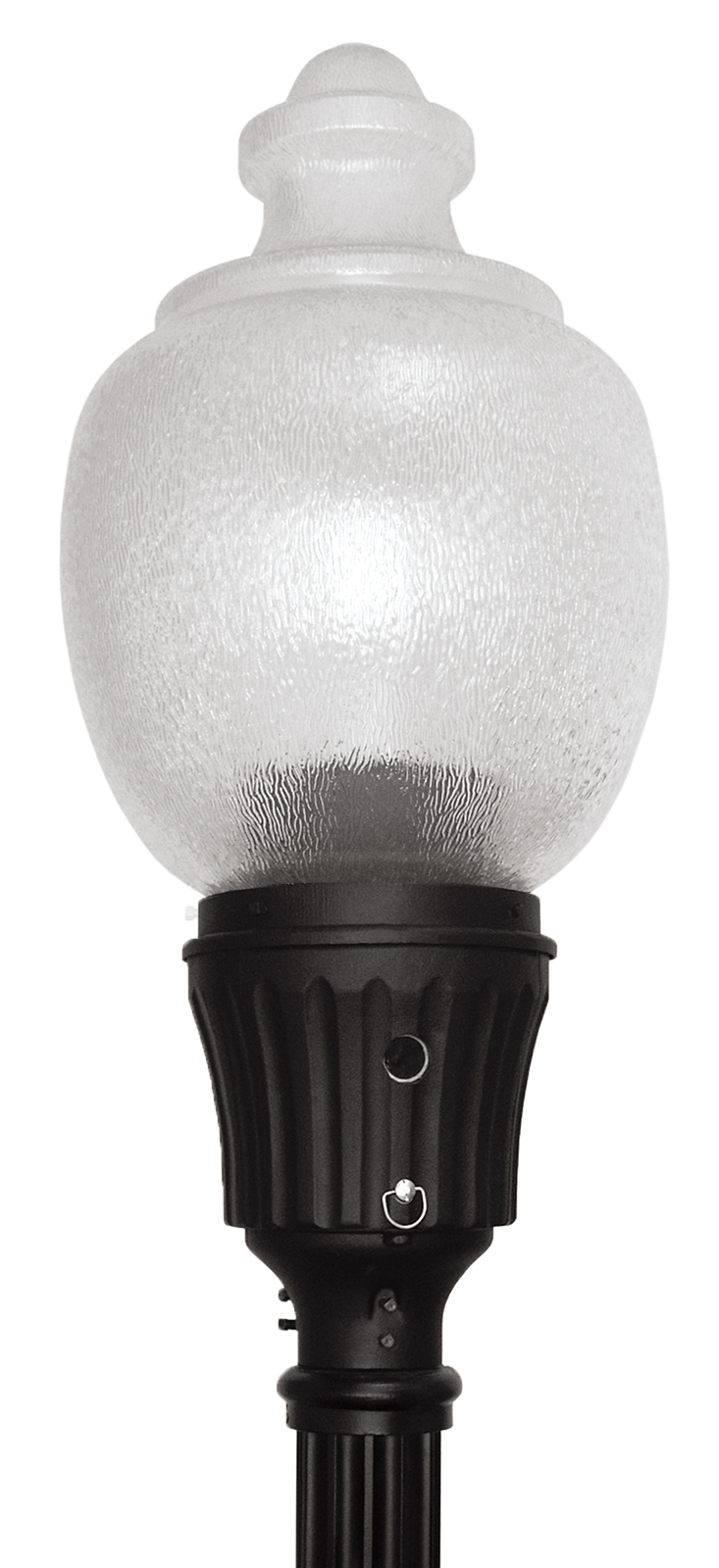 Decorative lighting for residential roadway and commercial property, where independent fixture control is desired. The AO25 Series consists of a decorative acorn combined with one of several styles of cast aluminum fitters.