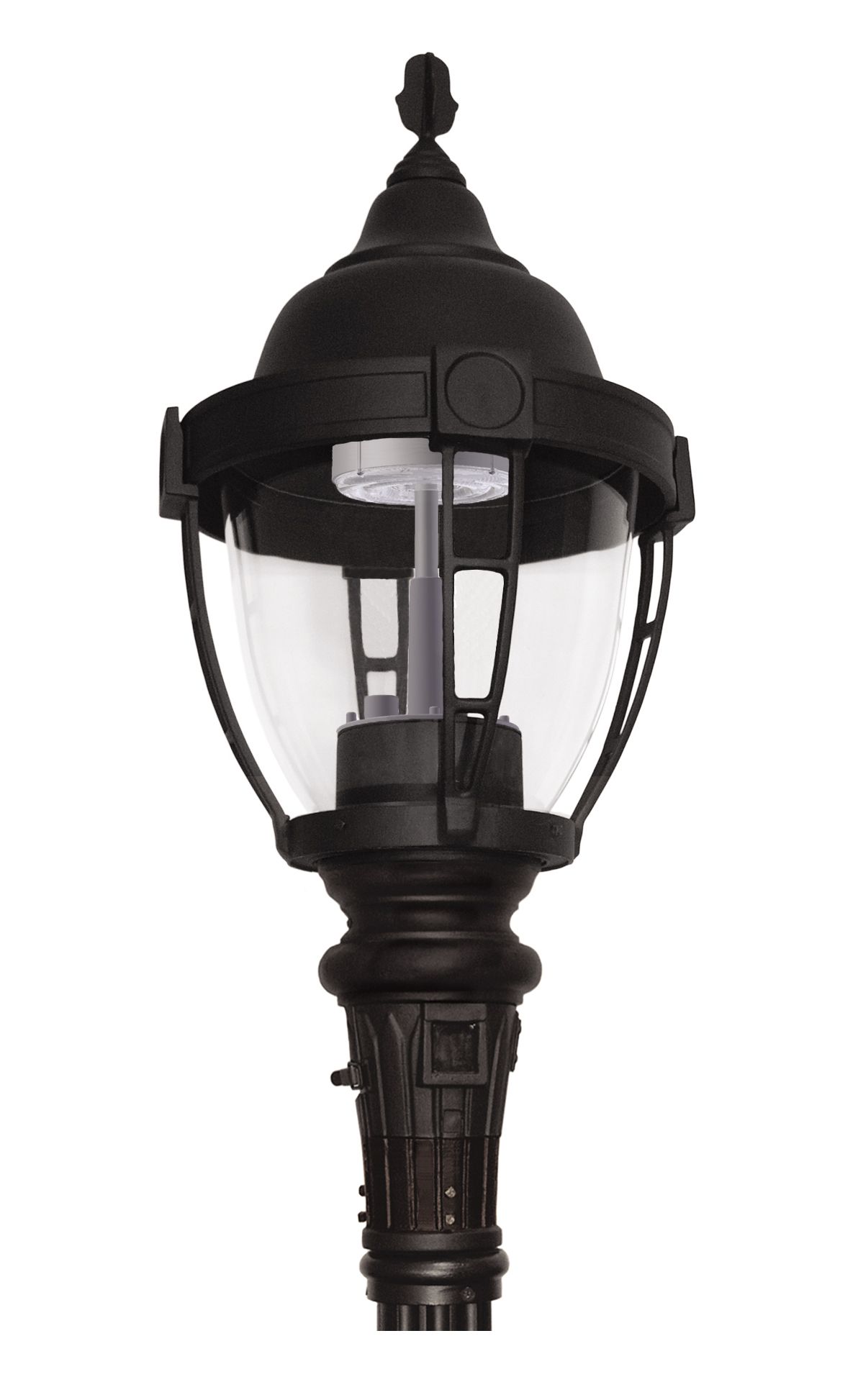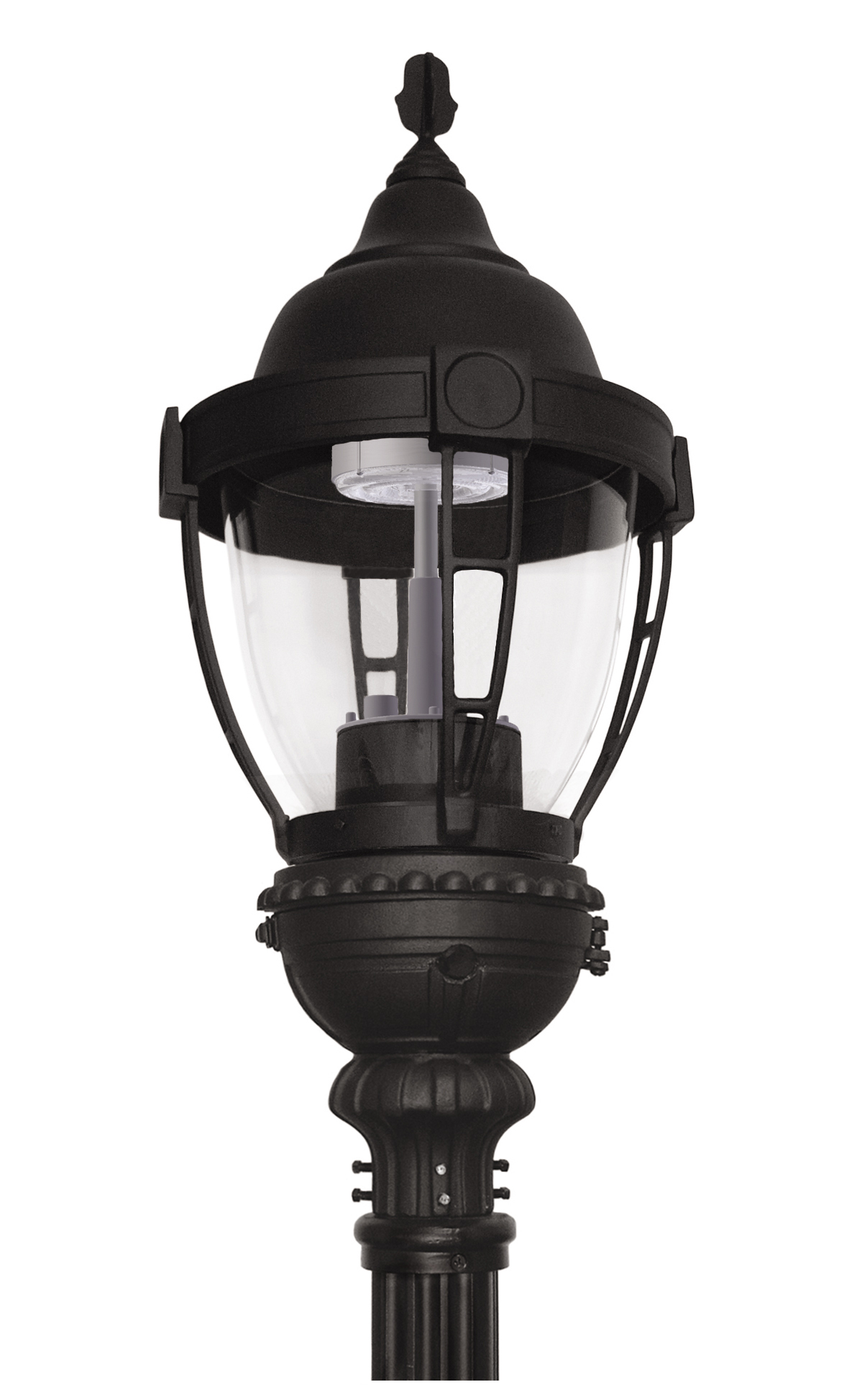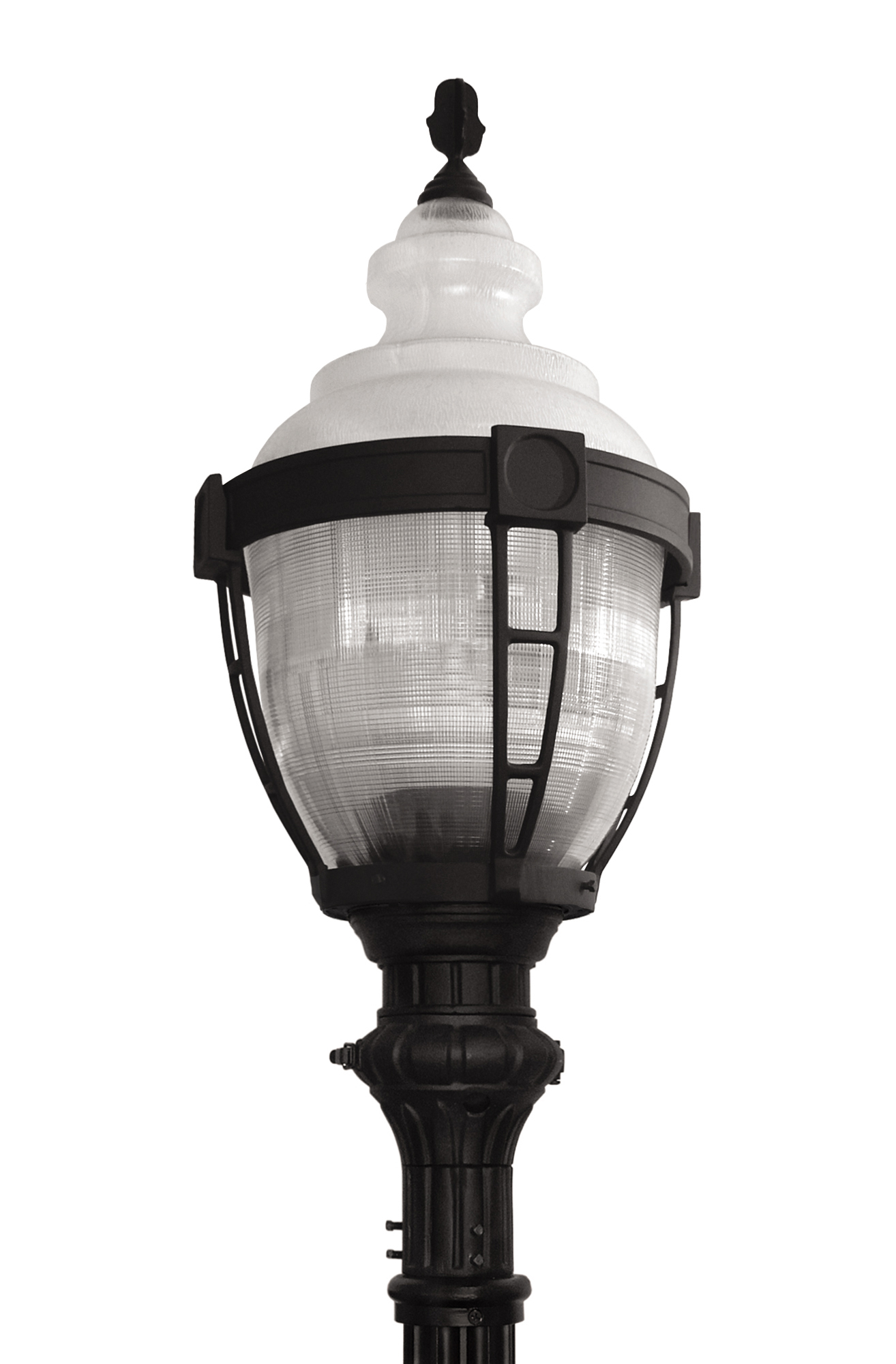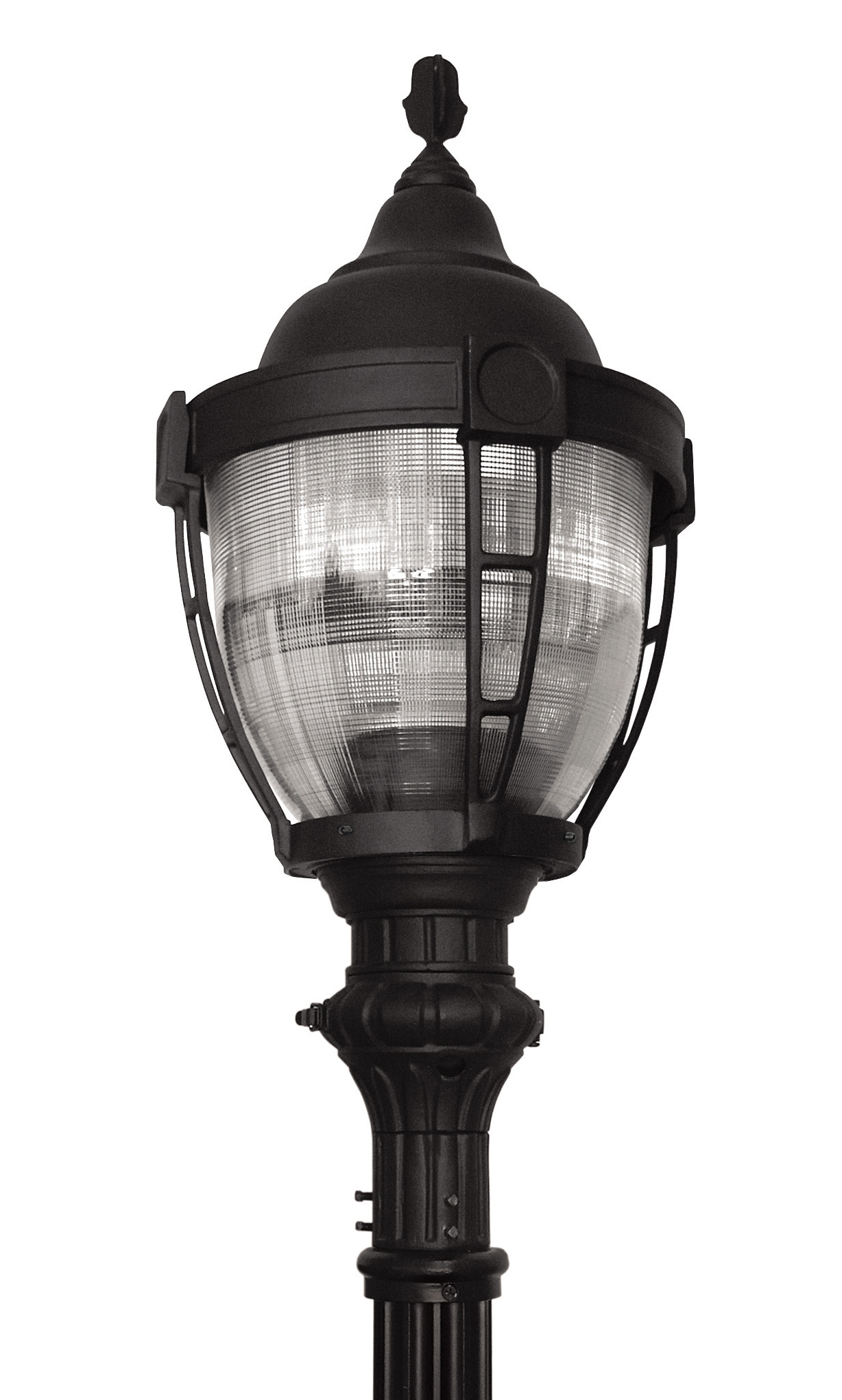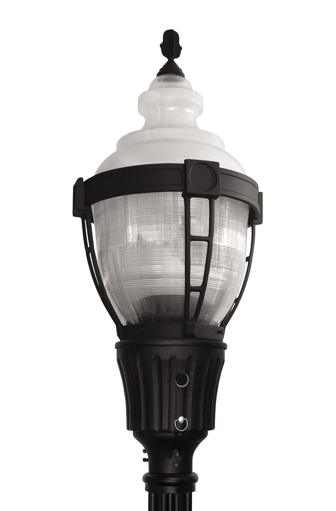 Decorative caged options are available for both Textured and Refractive acorn lensed luminaires.  The fixtures are widely used on residential streets, local and collector roads, and feature a choice of fitters and acorn shapes.