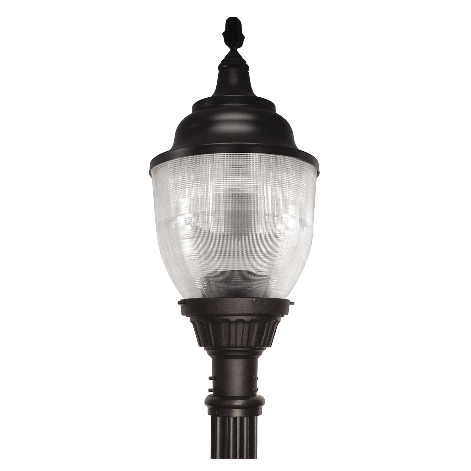Lighting for exterior retail, commercial and hospitality environments. The ARP23 Series consists of an efficient Type III (T3) or Type V (T5) refractive acorn combined with one of several styles of cast aluminum fitters. Powered by Amerlux’s patented AVISTA® LED system with options for intensity, distribution and color.